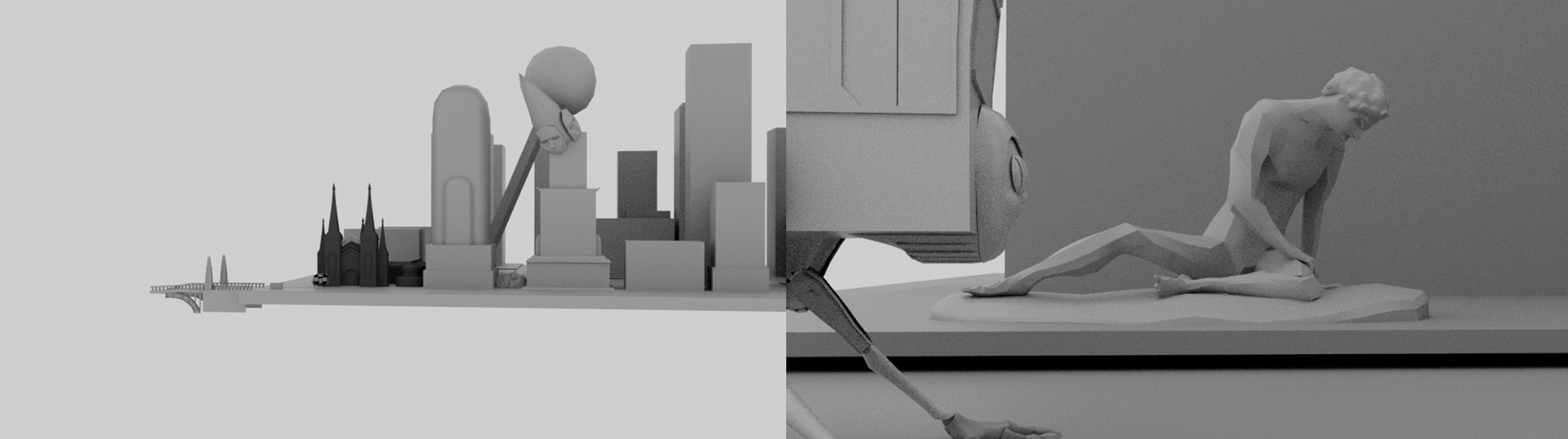 In charge of blockout for the city - Its shape resembles the statue of Dying Gaul as a reference to the fall of humanity.
